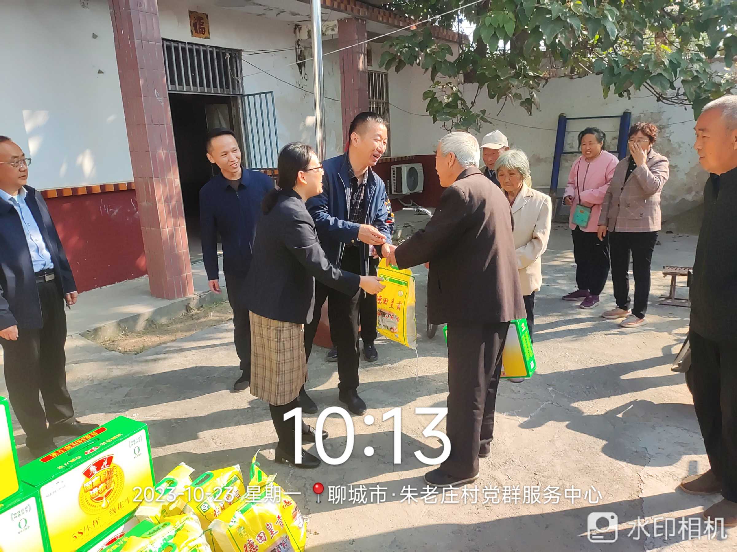 度假区社发局、镇政府联合聊城市工商银行在重阳节为徐集村老年人送去大米等慰问品。